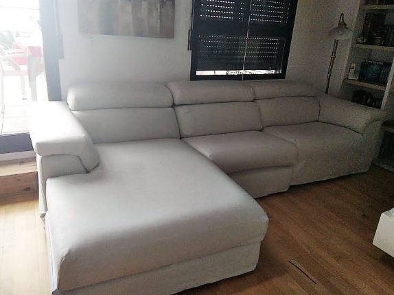 Sofá chaiselongue. Funda a medida. Sofá con cabezales abatibles Chaiselongue. El mueble está compuesto de dos partes, una de ellas se asemeja a un sofá de dos plazas y la otra corresponde a la parte larga en la que se puede descansar más cómodamente. Esa parte larga que comentamos puede estar a la izquierda (brazo […]