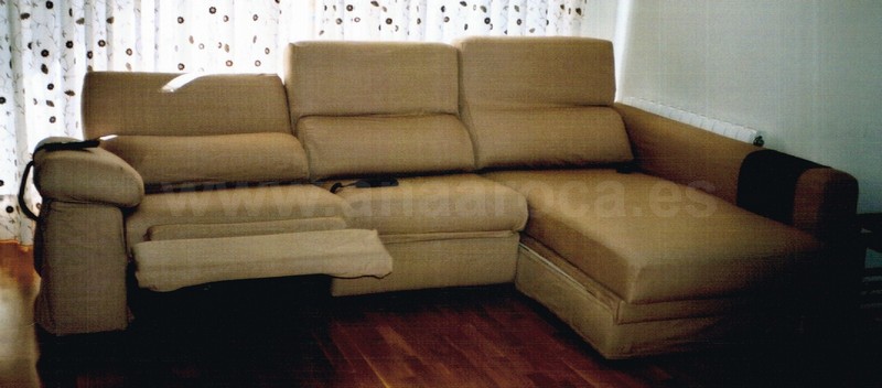 Funda a medida para chaiselongue con módulos abatibles eléctricos. Se puede confeccionar una funda que puede se utilizar con módulos abatidos o sin abatir. Siempre sin tener que quitar la funda en ninguno de los casos.
